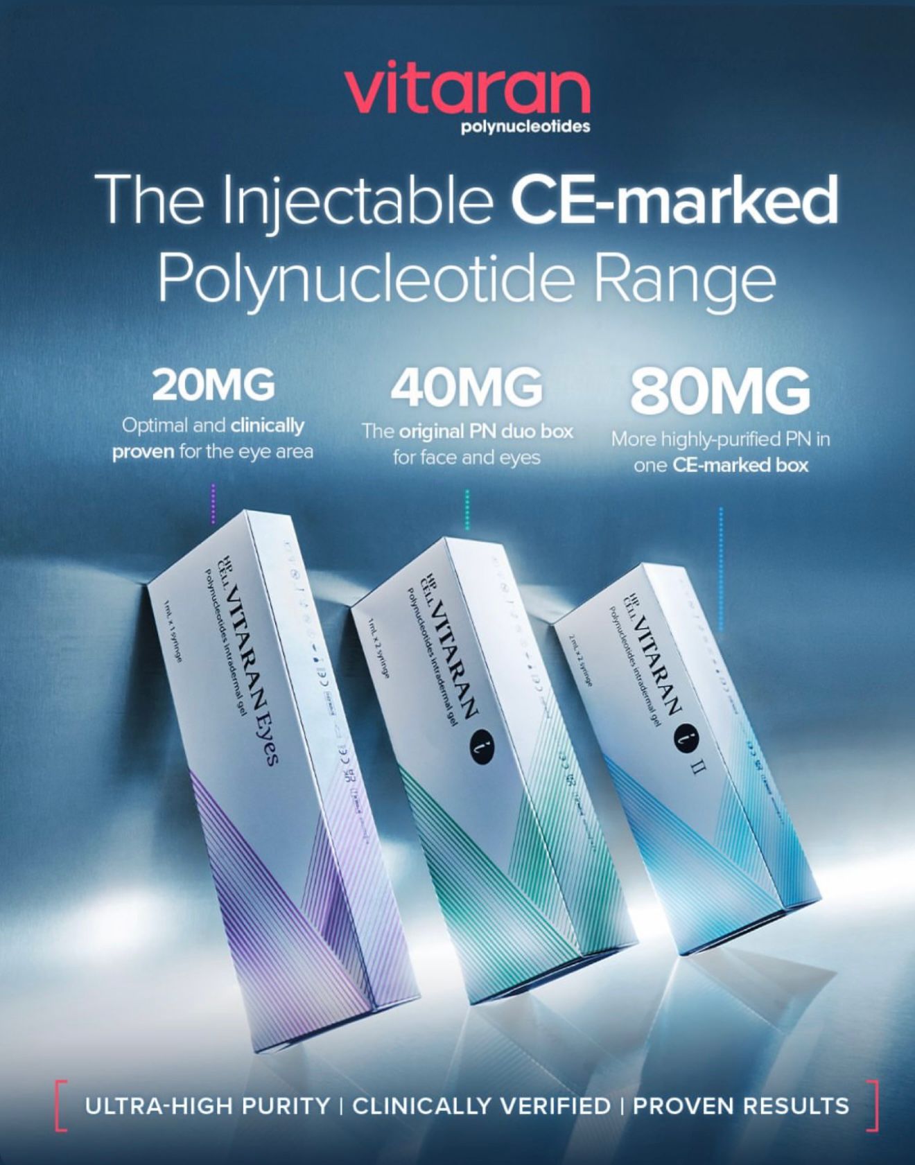 Vitaran Polynukleotidit (PDNR) ovat innovatiivinen, CE-merkitty uuden sukupolven ihonhoito, joka perustuu lohen DNA:han ja stimuloi solujen uusiutumista. Se parantaa ihon rakennetta, vaalentaa tummia silmänalusia, kiristää silmänympärysihoa ja säilyttää kosteustasapainon, edistäen nuorekasta ja elinvoimaista ihoa.
